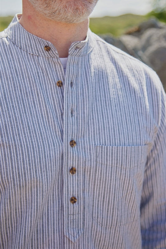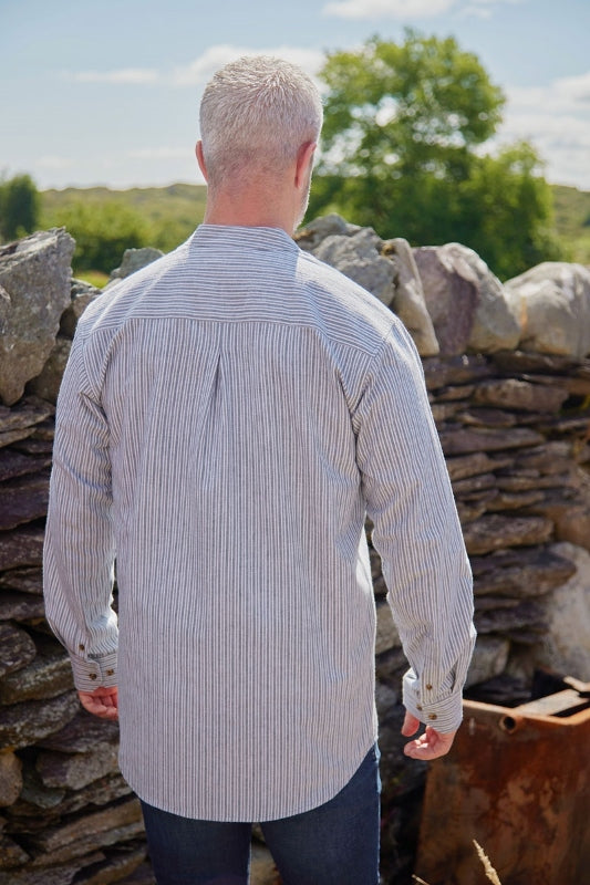Vintage Granddad Shirt - Slate grey pin stripes - Lee Valley
